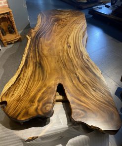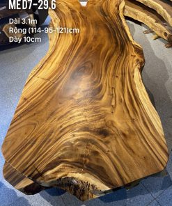 Chất liệu mặt bàn: Gỗ Me Tây nguyên tấm 100%, để viền tự nhiên