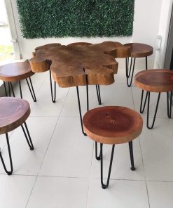 Bàn gỗ Me Tây nguyên tấm dày 5cm chân Hairpin đặc điểm của gỗ Me Tây Nguyên Tấm là không tấm nào giống tấm nào, kích thước vừa phải cho bàn cafe gỗ me tây kết hợp với chân sắt Hairpin đủ kích thước, chân cực kỳ chắc chắn, vân gỗ đẹp với viền vàng và trong màu tối hình dáng lạ mắt.