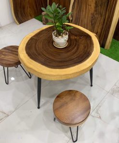 - Chất liệu: Mặt bàn gỗ me tây nguyên khối, chân sắt hairpin