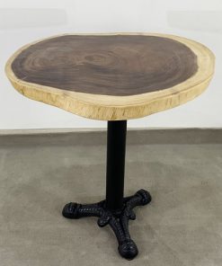 Bàn Cafe Gỗ Me Tây Nguyên Tấm chân Gang Đúc 3 chĩa điểm nổi bật của chiếc bàn chính là ở mặt bàn tròn Nguyên Tấm Gỗ Me Tây theo thân cây với vân rất đẹp mắt, đường kính rộng rãi kết hợp với chân đế gang đúc 3 chân rất nặng tạo nên chiếc bàn vững chãi, rất phù hợp cho các không gian quán cafe, không gian Pantry văn phòng hay ở sân vườn, nhà ở đều rất đẹp mắt, chiếc bàn nguyên tấm chính là một điểm nhấn trong không gian thiết kế.