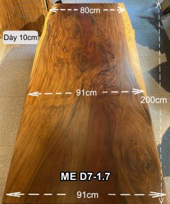 Chất liệu mặt bàn: Gỗ Me Tây nguyên tấm 100%, để viền tự nhiên